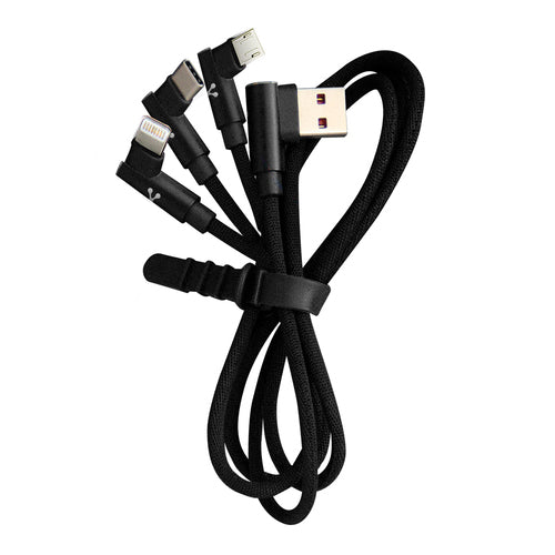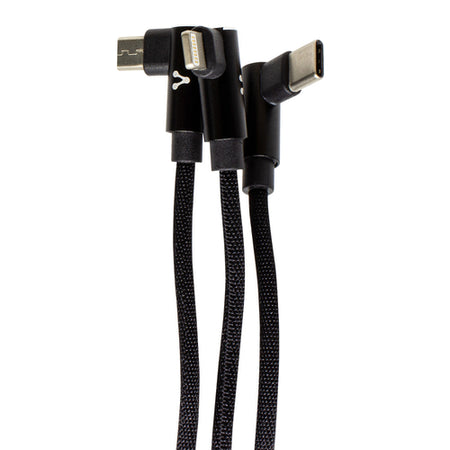 Cable USB Vorago CAB-308 3 en uno, micro USB, Tipo C y Lightning, negro 1.2 M, conectores en 90 grados,