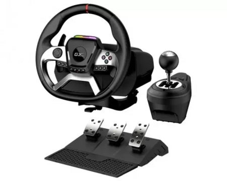 Volante Con Pedales Y palanca De 6 Velocidades Genius GX GAMING SPEED MASTER X5 FF, USB-C, PC/PS4/Xbox One, Negro