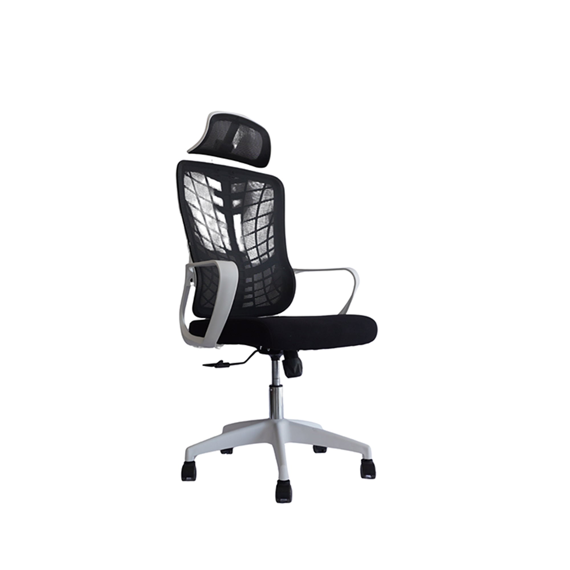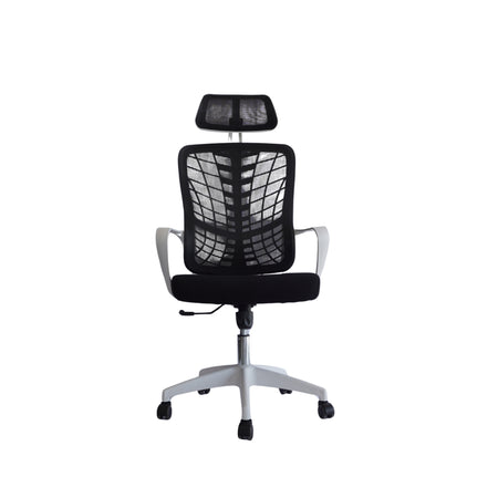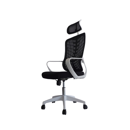 Silla Gerencial MODAMOB modelo Shadow, Respaldo y cabecera de malla, piston de gas C3 120Kg, reposabrazos, soporte lumbar, color negro/gris.