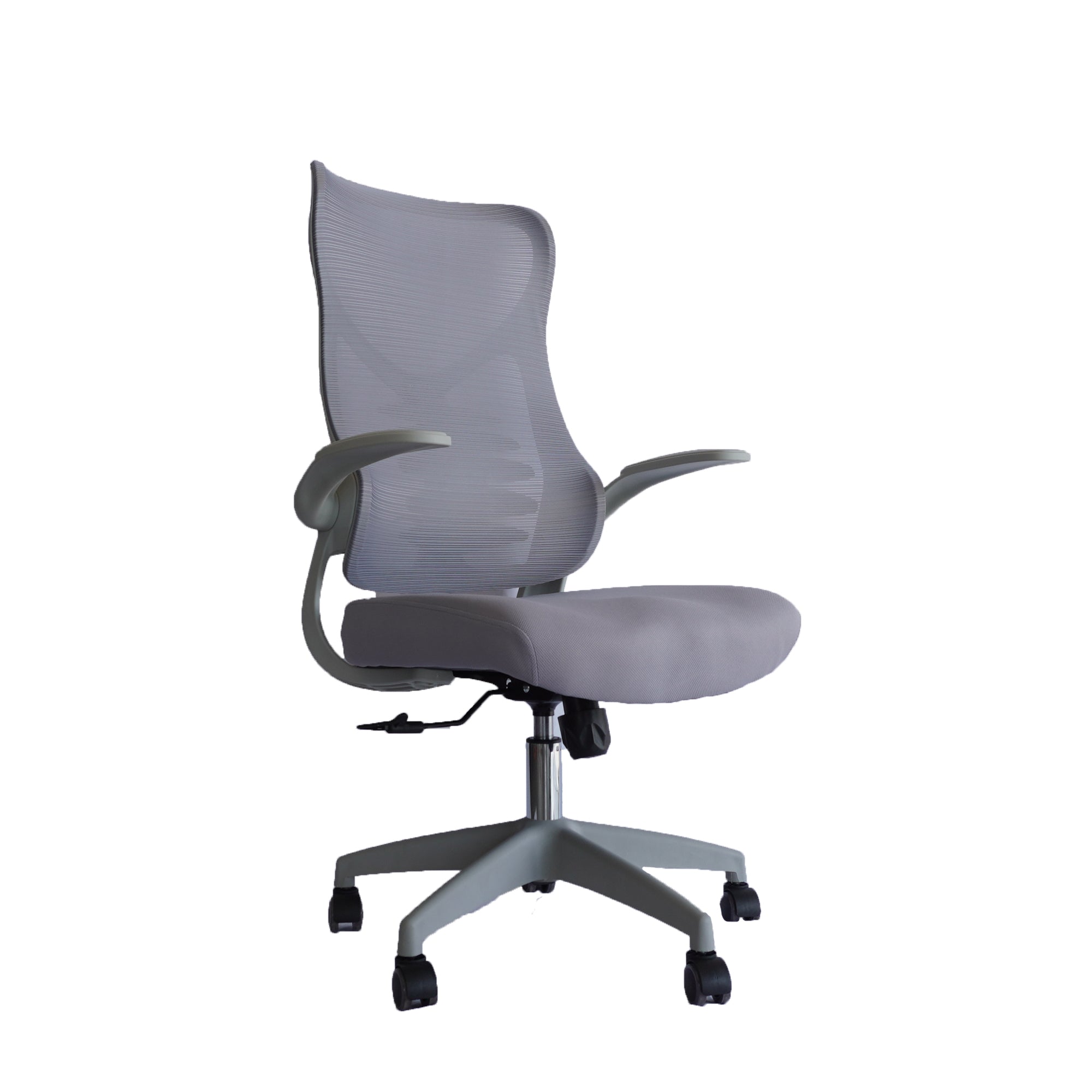Silla de Oficina MODAMOB modelo Ash, respaldo de malla, piston de gas C3 120Kg, reposabrazos, soporte lumbar, color gris.