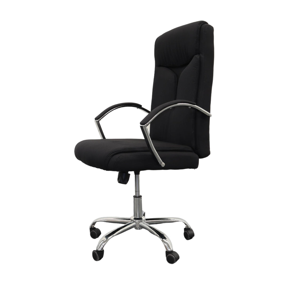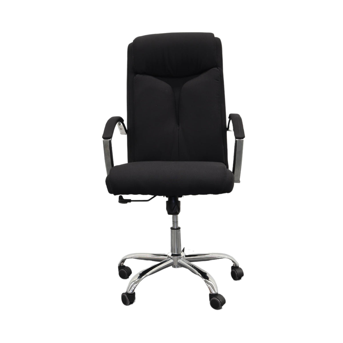 Silla Gerencial Negra modelo VEGA, Piston de Altura Ajustable, Reposa Brazos, Base Metalica, 5 Llantas