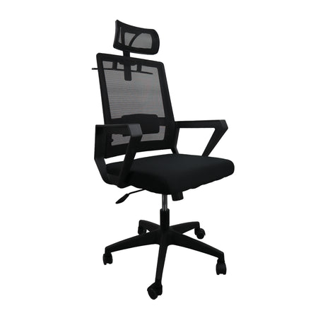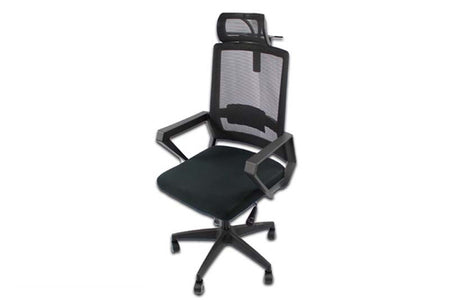 Silla gerencial MODAMOB IRIS, respaldo y cabecera de malla, piston de altura, reposabrazos, soporte espalda