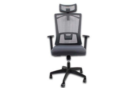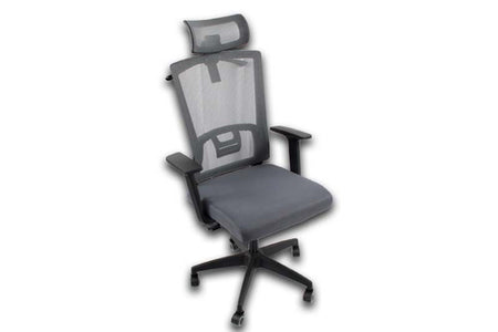 Silla gerencial MODAMOB KIOTO, gris/negro, reposabrazos, 5 llantas, piston de altura, perchero en cabecera