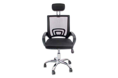 Silla gerencial MODAMOB, modelo LYRA, reposabrazos, respaldo de malla, piston C3 120KG, base metalica con ruedas, color gris