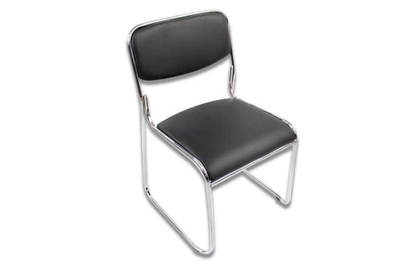 Silla de visita MODAMOB, modelo CORVUS, asiento y respaldo de piel color negro, base de tubo de cromo, 1pz