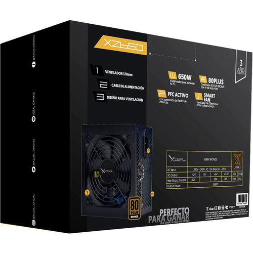 Fuente de Poder Xzeal XZ650, 650w, Certificado 80 Plus Bronce, PFC Activo, Smart Fan 120mm, Atx 20+4 Pin