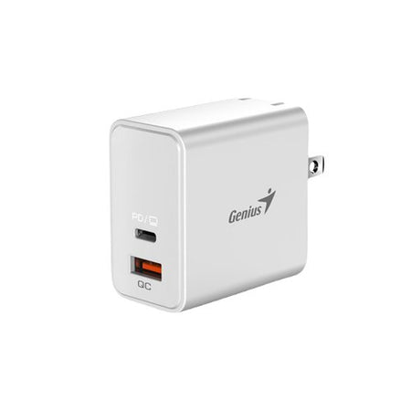 Cargador Genius 65W, 1x USB tipo-C, 1x USB-A, Blanco
