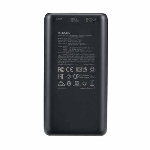 Power Bank Adata P20000QCD, 20,000 mAh, 1xUSB-C, 2xUSB 2.0, 3 puertos, color Negro