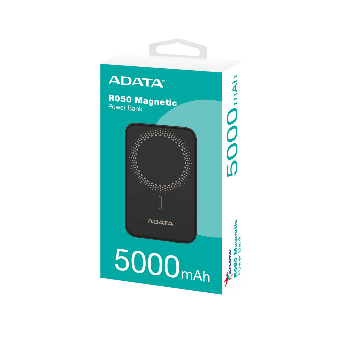 Power Bank ADATA R050, 5000 mAh, Cargador Inalambrico, Soporta 2 Dispositivos, Carga USB-C, Negro