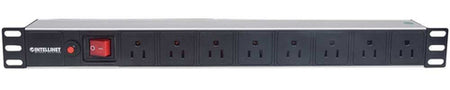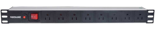 Barra multicontactos Intellinet (PDU), para montaje en 1U de rack 19Pulg., 8 contactos, aluminio, negro