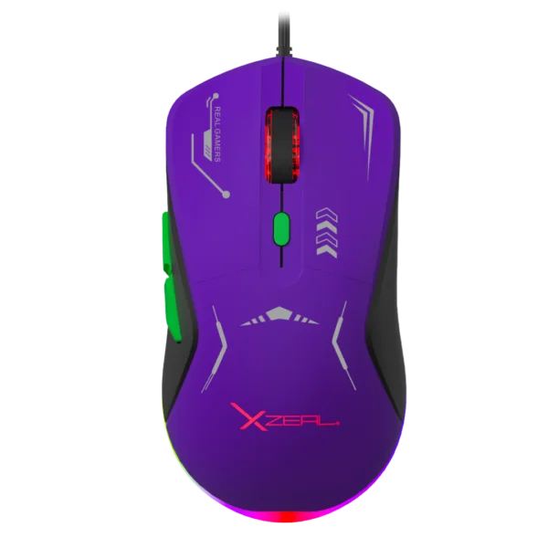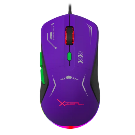 Kit Teclado y Mouse Gamer XZEAL XZ-201, USB, Mecanico, Alambrico, 7200DPI, RGB, Negro/Purpura/Verde