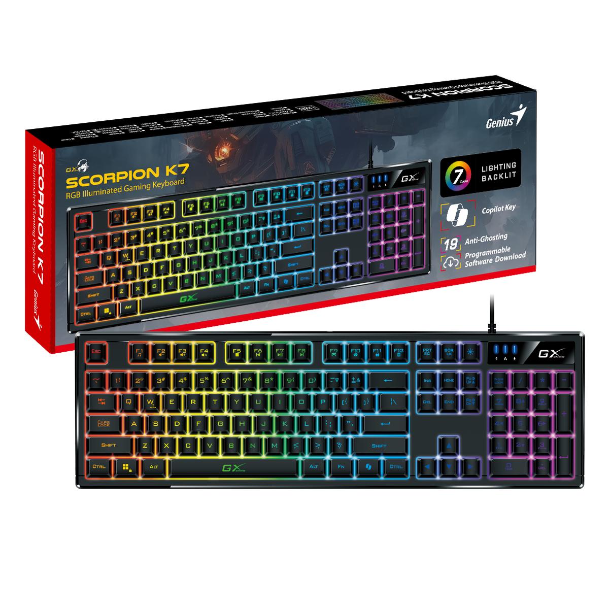 Teclado Gamer Genius Scorpion K7, AntiGhost, RGB, Resistente a Salpicaduras, USB, Negro
