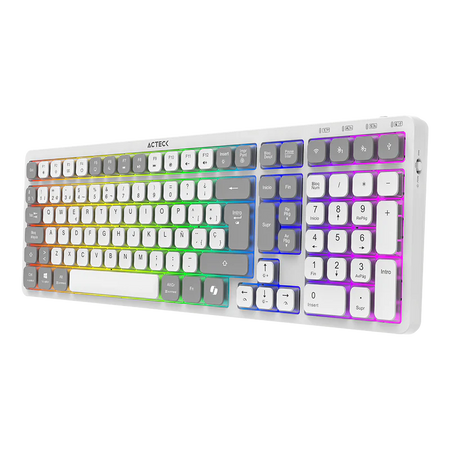 Teclado Acteck TECHNO PRO TI790, Inalambrico, Mecanico, RGB, Bluetooth, USB, Blanco