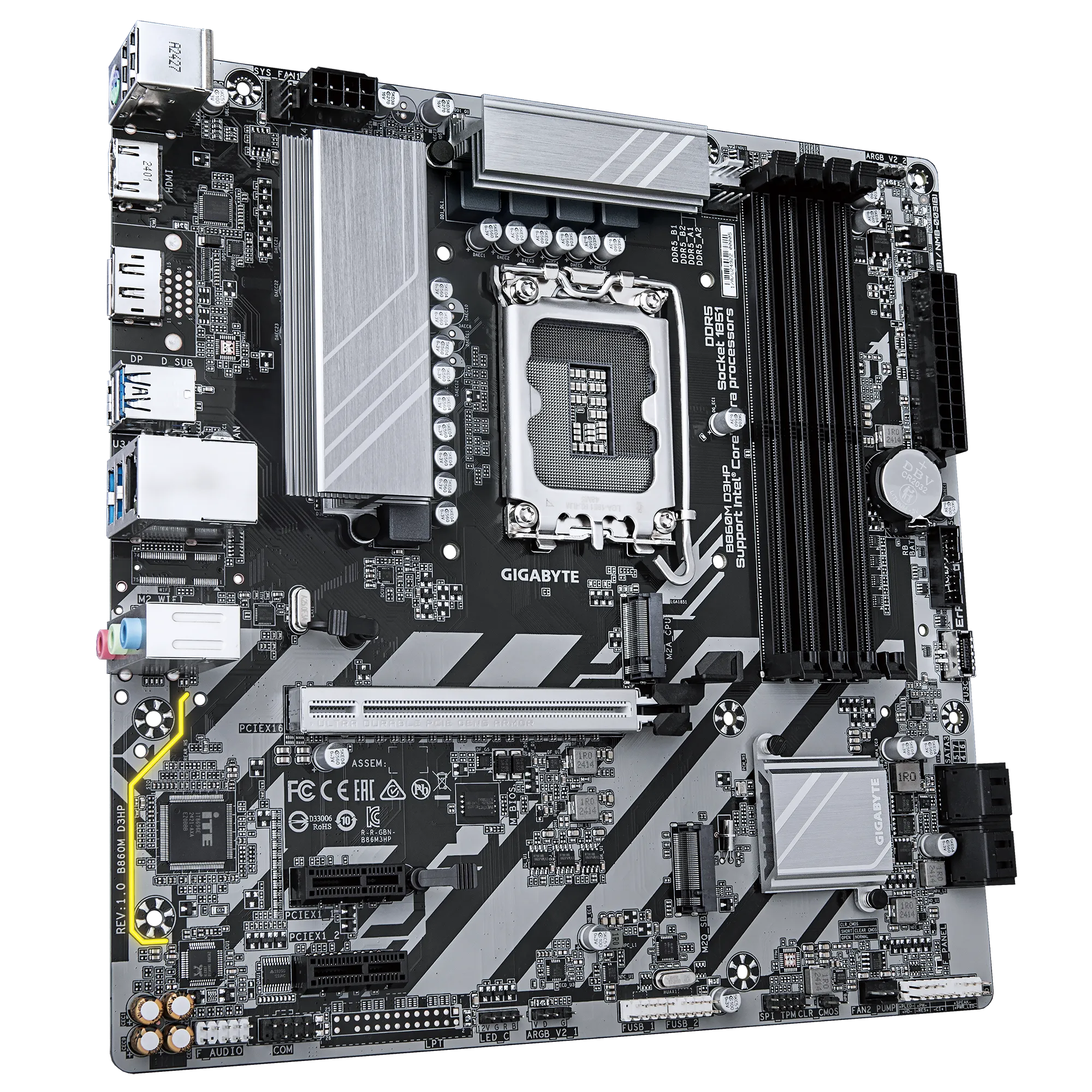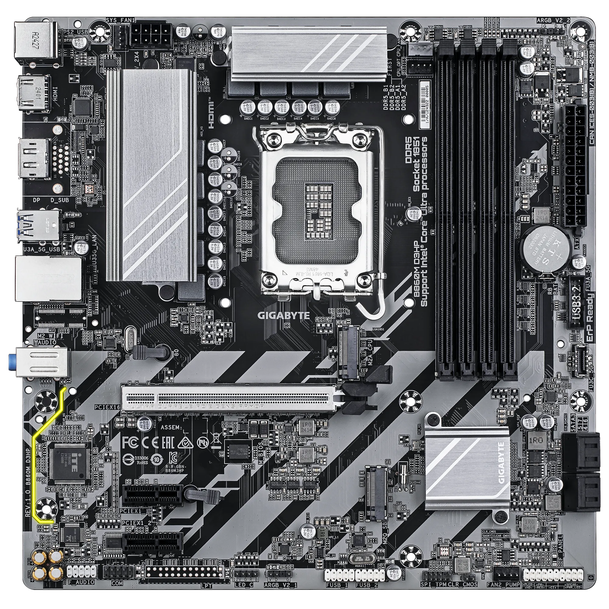 Tarjeta Madre Gigabyte B860M D3HP, Micro-ATX, LGA 1851, 256GB DDR5, HDMI/DisplayPort Para Intel