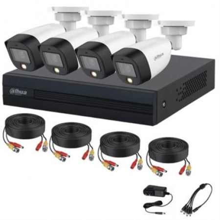 Kit de Vigilancia Dahua CCTV, DVR 4 Canales, 4 Camaras Full color, 2MP, IP67, Con accesorios