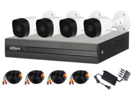 Kit de Vigilancia Dahua CCTV, DVR 4 Canales, 4 Camaras bala, 5MP, IP67, Con accesorios