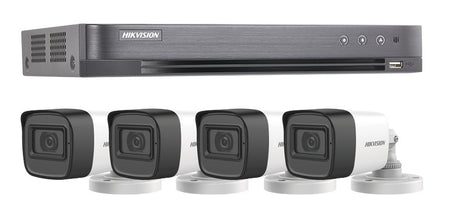 Kit de Vigilancia Hikvision CCTV, DVR 4 Canales, 4 Camaras con microfono, 5MP, IP67, Con accesorios