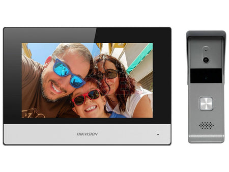 Kit Videoportero Hikvision hibrido, Touch, Wi-Fi, Altavoz, Apertura de Puerta, IP65